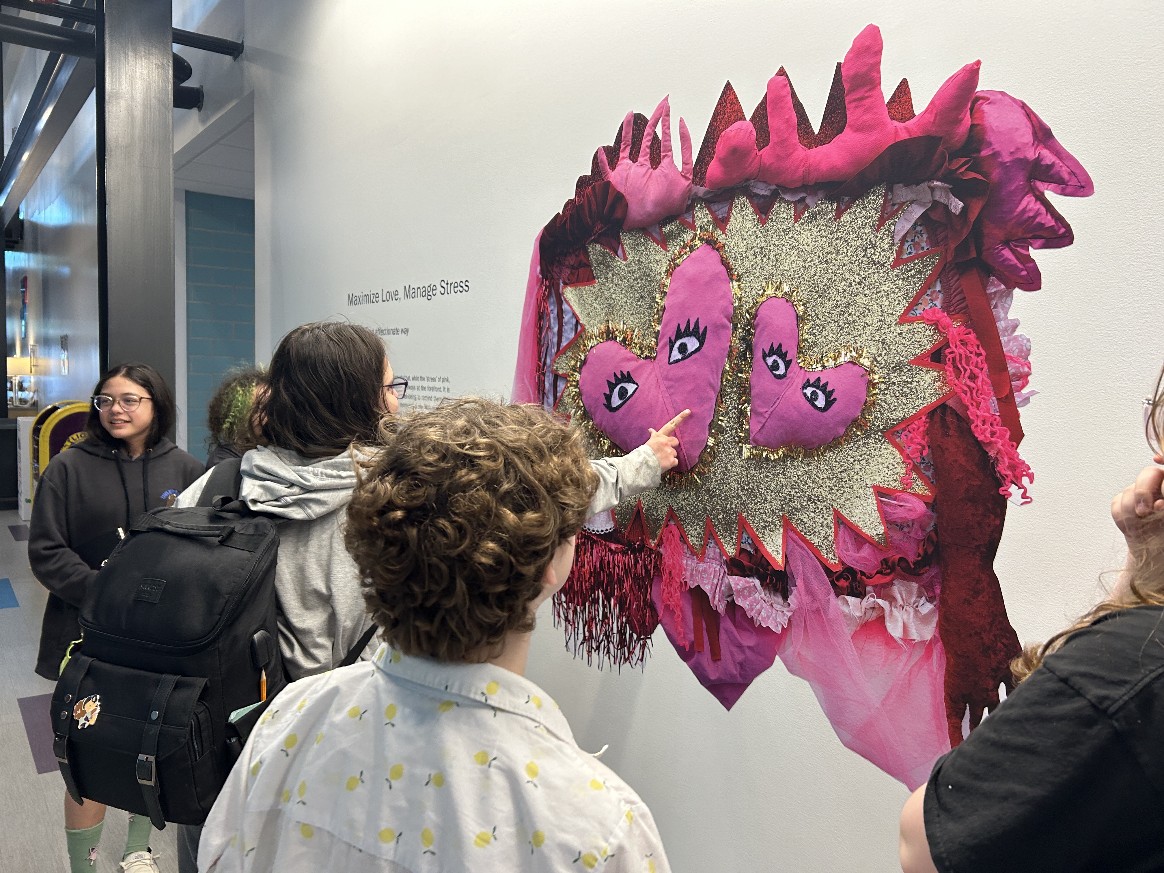 This collaboration got us thinking – how does this kind of interaction extend throughout our entire lives? Care and love are both complex, essential parts of living—through all stages, ages, and relationships. Five works by local artists Artzbeat, Luke Gawron, Molly Goehring, Michelle Moats, and Carol Reed were shown alongside a series of community-based artworks made by CALC’s ArtWorks, ArtLab, and Artful Aging programs. Together, these projects emphasize the importance of overcoming separateness through care and attention to one another.
